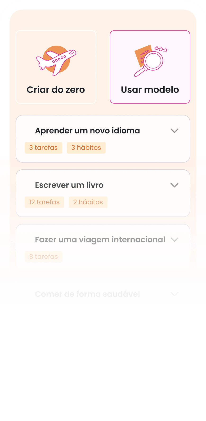 Nossa IA divide seus objetivos em ações diárias, tornando a realização mais próxima e acessível.