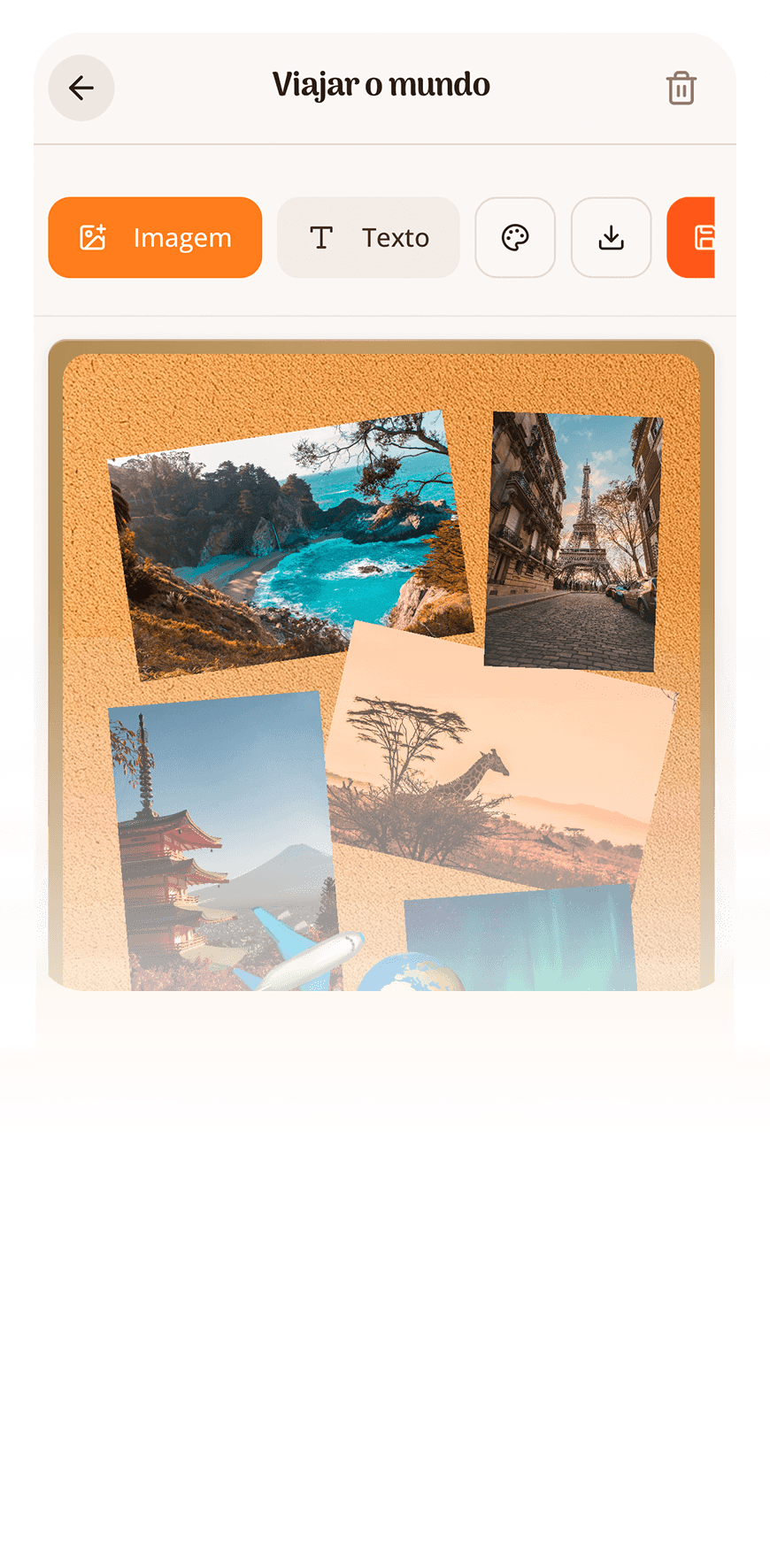 Visualize o futuro que você quer construir. Crie um mural com imagens que representem seu sonho, usando fotos suas ou do nosso banco, e transforme em wallpaper.